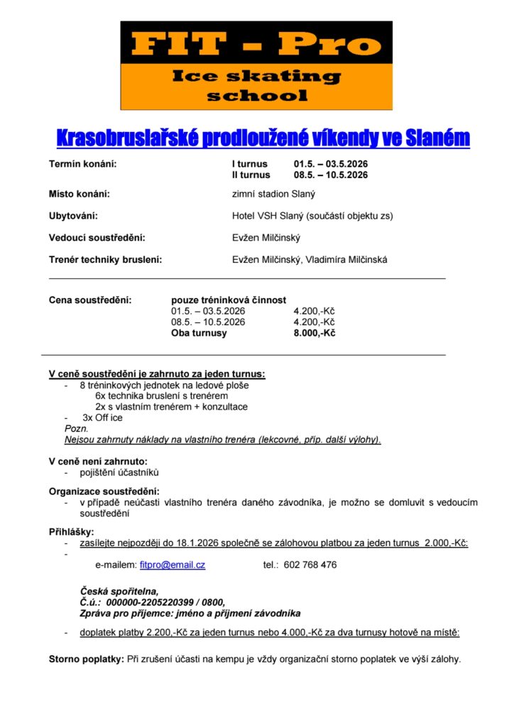 Přihlášky zasílejte emailem fitpro@email.cz tel. +420602768476